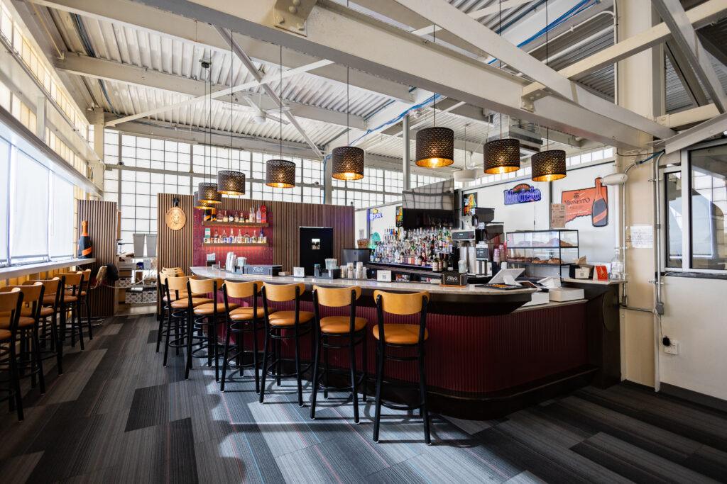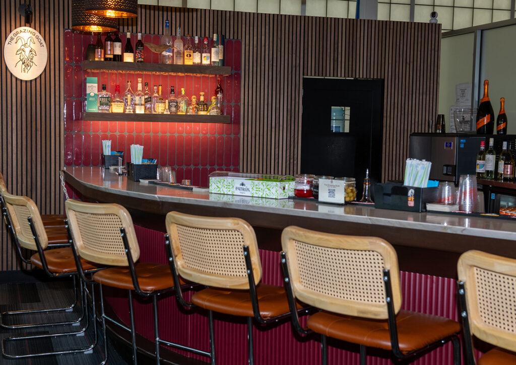 Located at Gate 1, The Grazing Goat serves craft beer, wine, cocktails, and light fare in a relaxed atmosphere. Perfect for a pre-flight drink or snack. View the menu here.
